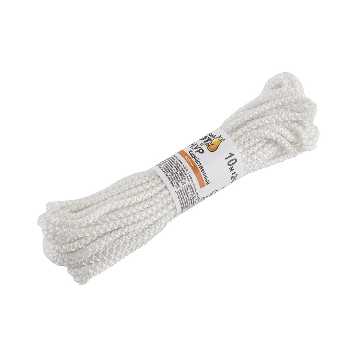 Шнур хозяйственный d3мм 10м 4-х ниточный Белый Рыжий кот