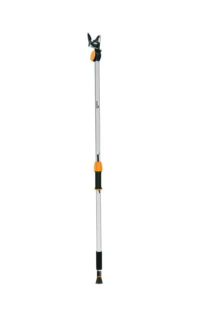 Универсальный высоторез предназначен для резки свежей древесины. Вертикальный рабочий диапазон около 4 м. Прочная конструкция штанги изготовлена из алюминия, имеет прорезиненные ручки в местах хвата. Лезвия изготовлены из углеродистой стали. Материал инструмента: сталь, полипропилен, резина.