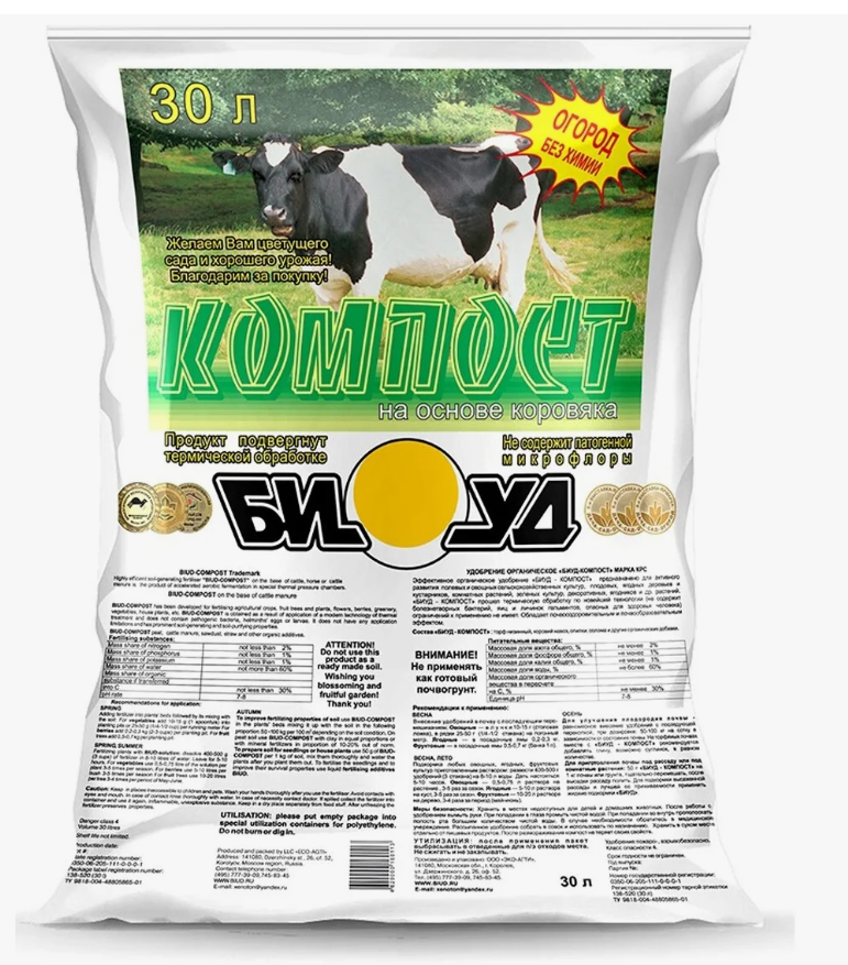 Состав Торф низинный, коровий навоз, опилки и другие органические добавки.