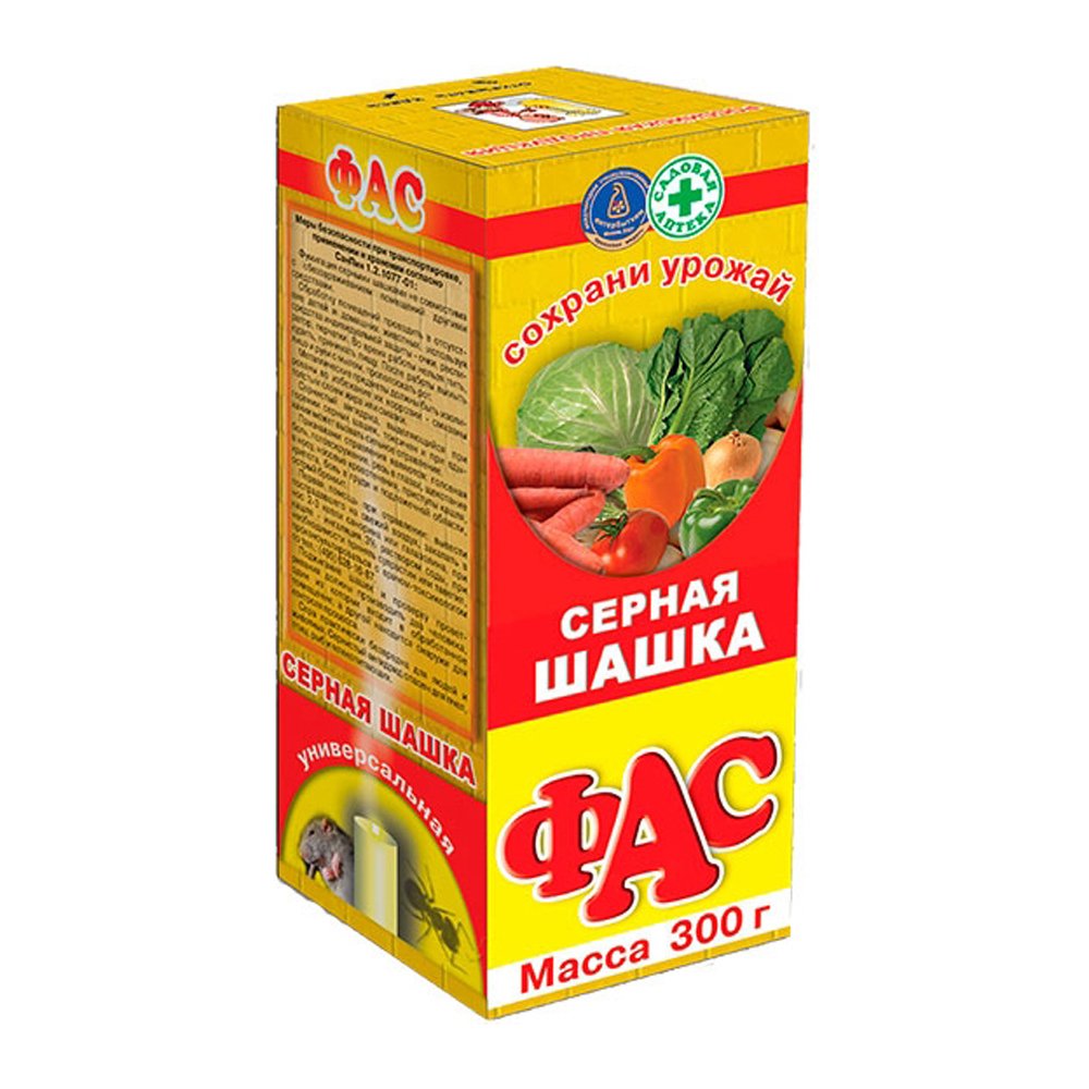 Современное средство серная шашка ФАС для фумигационной обработки пустых погребов и подвалов, парников, теплиц и оранжерей, которая уничтожает: