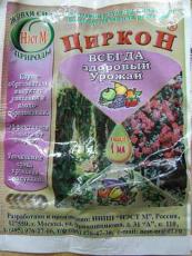 Циркон - мощный индуктор болезнеустойчивости (иммуномодулятор), корнеобразователь, обладает фунгицидным действием, обеспечивает защиту растений от засухи. Индуктор цветения и плодообразования. Нормализует обмен веществ растений. Изготавливается из природного сырья - эхинацеи пурпурной.