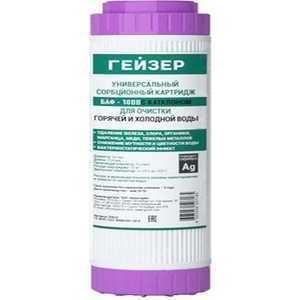 Картридж БАФ-10BB используется для очистки питьевой воды в трехкартриджных системах очистки воды, а также в одноступенчатых фильтрах. Картридж БАФ включает в себя мультикомпонентную загрузку фильтрматериала. Состав загрузки включает в себя смесь гранулированного серебренного активированного угля, волокнистого углеродного сорбента (ММВ) и ионообменного волокна "Каталон". В результате очистки устраняется неприятный запах, вода приобретает улучшенный вкус и цвет.