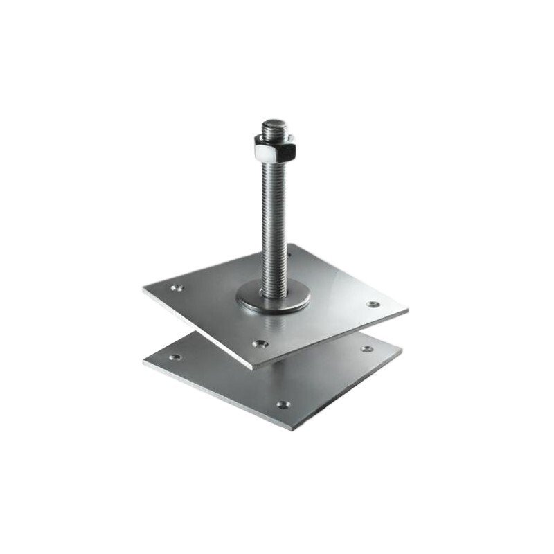 Анкер регулируемый по высоте (домкрат) – ARH. Описание: Материал: сталь. Покрытие: белый цинк. Применение: Применяется в качестве основания при монтаже несущих деревянных стоек, опор, столбов. Состоит из опорной пластины с приваренной шпилькой и подвижной опорной пластиной, положение которой регулируется с помощью гайки. Позволяет производить регулировку по высоте. Широко используется в деревянном домостроении, а также там, где необходимо исключить контакт стойки с материалом основания.