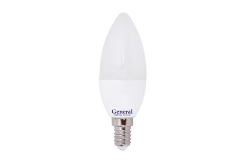 Лампа светодиодная LED General Е14 7Вт C35 свеча 2700K теплый свет // эквивалент 70Вт 637900