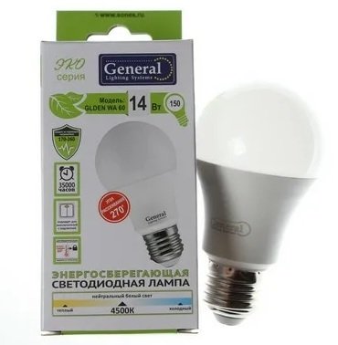 Лампа светодиодная LED General Е27 14вт А60 4500K нейтральный свет // Эквивалент 150Вт 637100