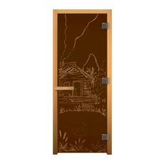 Дверь стекло Бронза Матовая Банька 190*70 8мм 3 петли 710 CR Осина Пр/ЦП