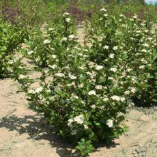 Арония черноплодная или Рябина черноплодная (Aronia melanocarpa) - раскидистый кустарник высотой до 3 м и диаметром кроны 2 м. Листья эллиптические яйцевидные или продолговато-ланцетные длиной до 6 см, летом ярко-зеленого, осенью — красного цвета. Цветки белые или розоватые, пятичленные, более 1 см в диаметре, собраны по 10— 35 штук в щитовидные соцветия. Цветет в мае-июне. Плоды шарообразные, до 1 см в диаметре, черно-пурпурные, блестящие, с восемью желто-коричневыми морщинистыми семенами. Ягоды черноплодной рябины поспевают уже к концу августа, но собирать их лучше после первых заморозков. Долго хранятся при низкой температуре. Плоды созревают в сентябре. Корневая система мочковатая, сильно ветвящаяся.