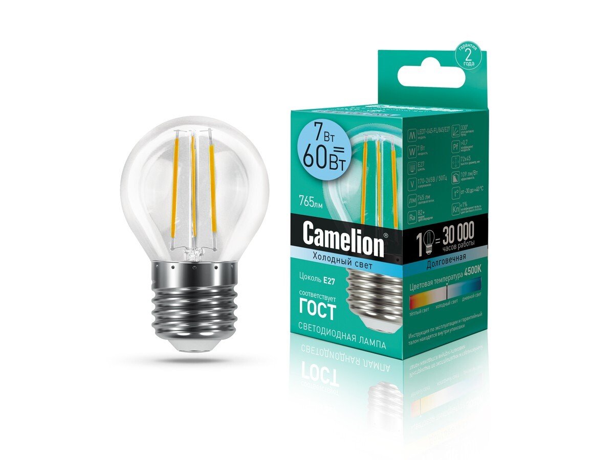 Лампа светодиодная LED Camelion Filament Е27 7Вт G45 шар 4500K холодный свет 13459