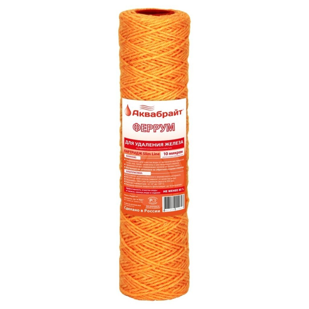 Картридж для удаления железа Феррум-10SLIM 10мкм Аквабрайт