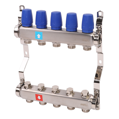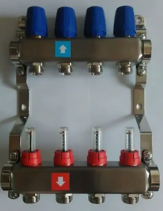 Коллектор нержав.сталь 4 выхода 1"х 3/4 в сборе с расходомерами MVI