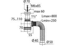 Регулировка сифона по высоте от 70 до 110 мм.