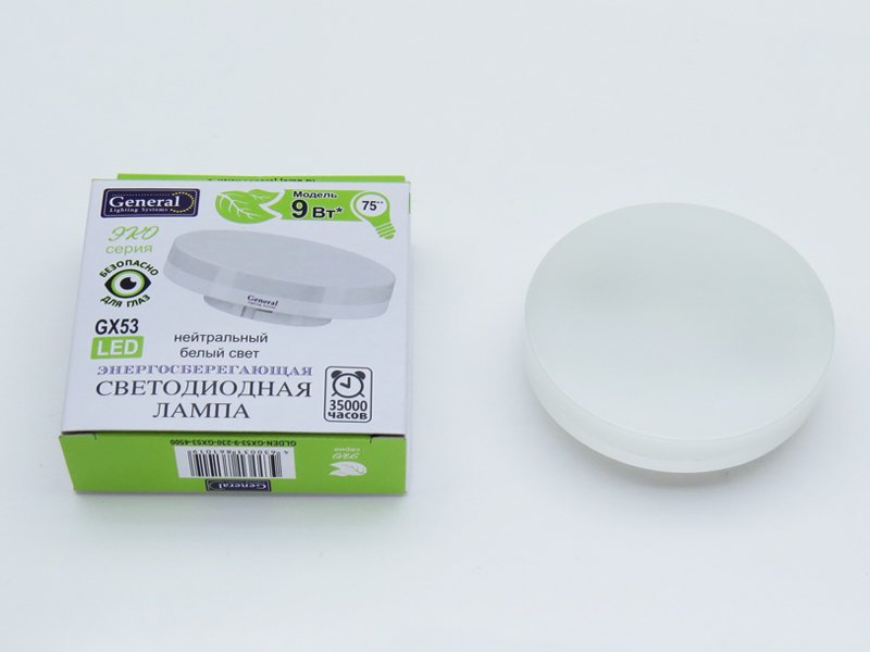 Лампа светодиодная LED General GX53 9Вт 75х22мм 4500K нейтральный свет 642800