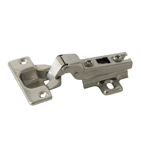 Петли четырехшарнирные мебельные полунакладные необходимы. когда в мебели используются смежные двери, где два фасада прикручены с двух сторон от перегородки шкафа. Такие петли закрывают пол торца ДСП. Они соединяют боковую стенку с фасадом под углом 90 градусов и имеют угол открывания 95-110 градусов. Данные полунакладные петли оборудованы системой Slide on и оптимально подойдут для мебели класса эконом.