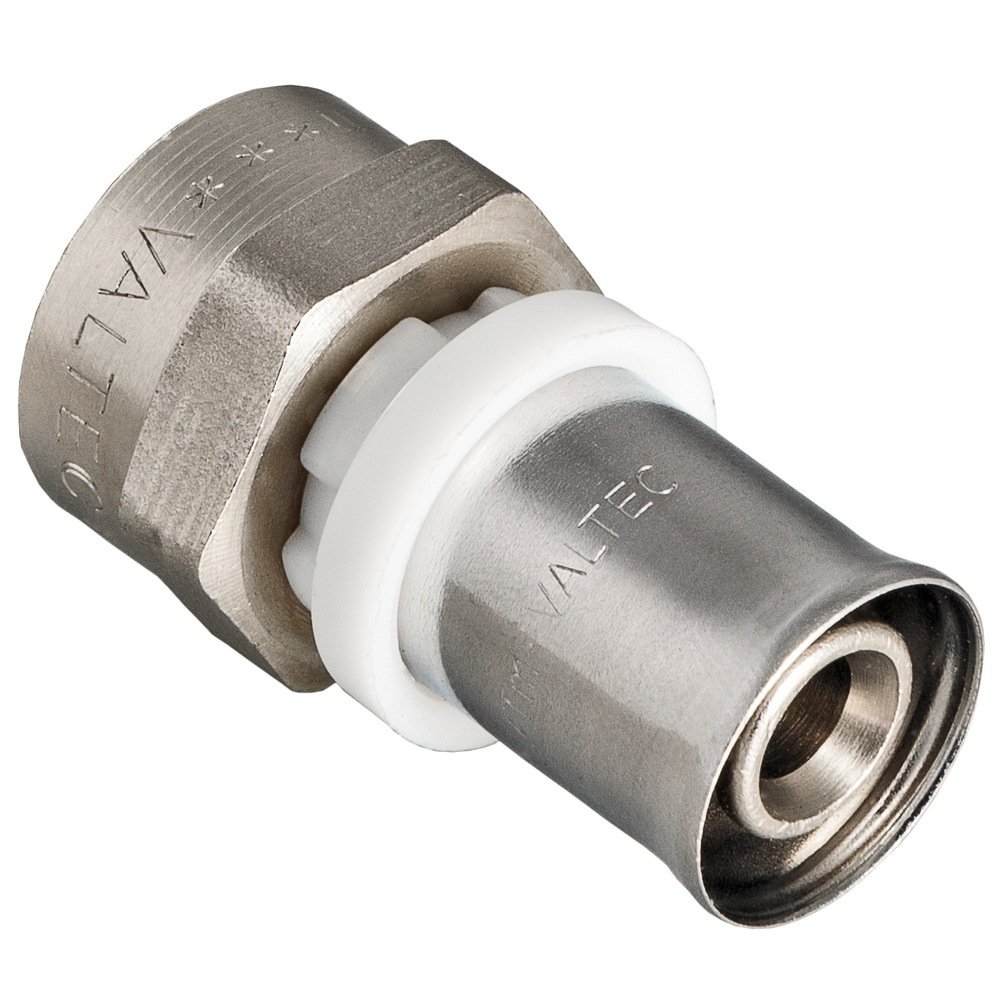 Диэлектрическая шайба из PTFE (тефлона) предотвращает возникновение гальванической пары между алюминием металлополимерной трубы и латунью, а также делает трубопровод в целом неэлектропроводным;