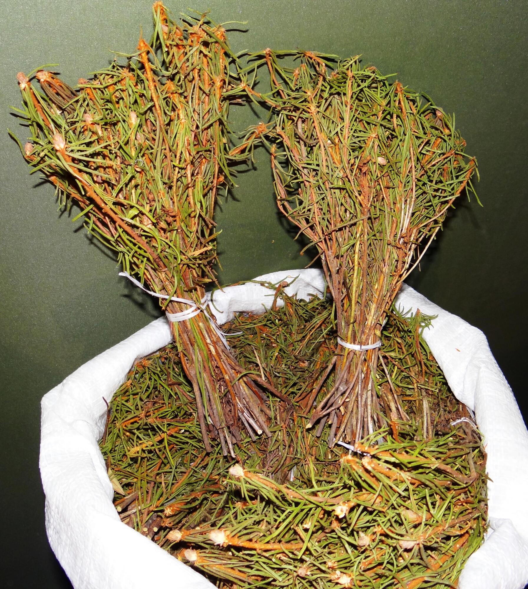 Багульник отличается высоким содержанием эфирных масел, которые придают этому растению ярко выраженный бальзамический аромат, напоминающий запах камфары. Эти вещества оказывают мощное целебное воздействие в подавляющем большинстве бронхолёгочных заболеваний, облегчая отхаркивание, снимая спазмы и очищая дыхательные пути. При простудных заболевания парение с багульником является замечательным потогонным средством.