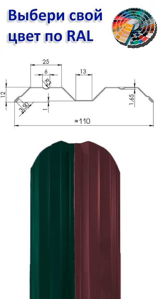 Евроштакетник М-образный (прямой\фигурный) цв. односторонний толщина 0,35