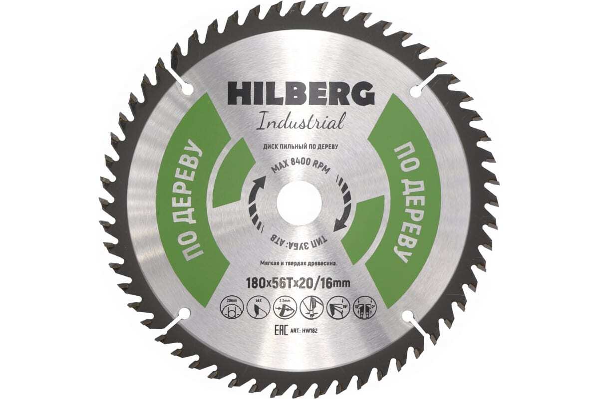 Диск пильный 180*20*16 56з Hilberg Industrial Дерево HW182