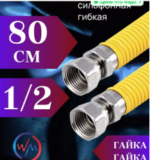 Подводка для газа 1/2 сильфон 80см г-г в желтой оплетке