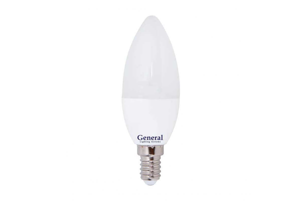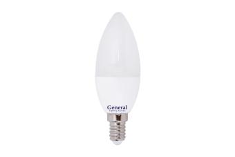Лампа светодиодная LED General Е14 7Вт C35 свеча 4500K нейтральный свет // Эквивалент 70Вт 638000