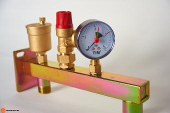 Группа подключения мембранного бака JH-1021 разрешает сразу все проблемы при разумных затратах. Она предназначена для закрытых систем отопления с теплоотдачей производителя тепла до 50 KW. Группа безопасности JH-1021 ,это единое устройство, готовое к применению и предназначенное для подключения мембранного расширительного бака, используется в закрытых системах отопления до 50 кВт. Состоит из: Предохранительного клапана, воздушного клапана, манометра автоматического запорного клапана. Универсальная настенная консоль из оцинкованной стали для стабильного и надежного крепления мембранных расширительных баков до 50 литров.