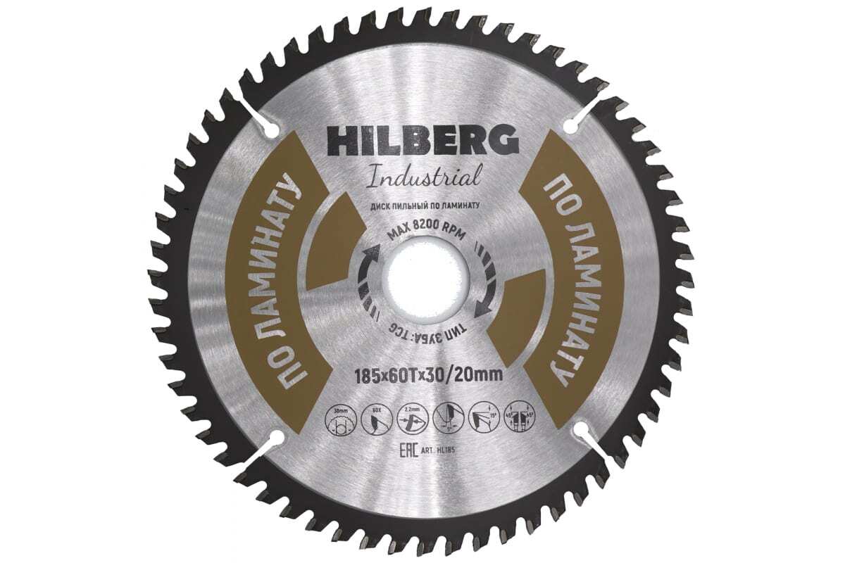 Диск пильный Hilberg Industrial Ламинат (185x30/20 мм; 60Т) HL185