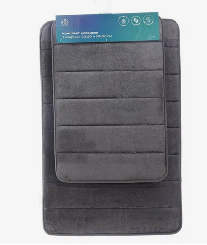 Комплект включает в себя два коврика размером 40х60 см и 50х80 см, что позволяет использовать их как в ванной комнате, так и в туалете.