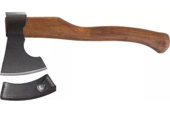Кованый топор с деревянной рукояткой Россия Ижсталь-ТНП Викинг-Премиум 600 г 20725 предназначен для колки дров, рубки мелких деревьев и веток. Голова выкована из инструментальной стали и надежно закреплена на топорище. Рукоятка выполнена из высококачественной древесины, для долгого срока службы она обработана олифой. Для безопасного хранения и транспортировки предусмотрен кожаный чехол.