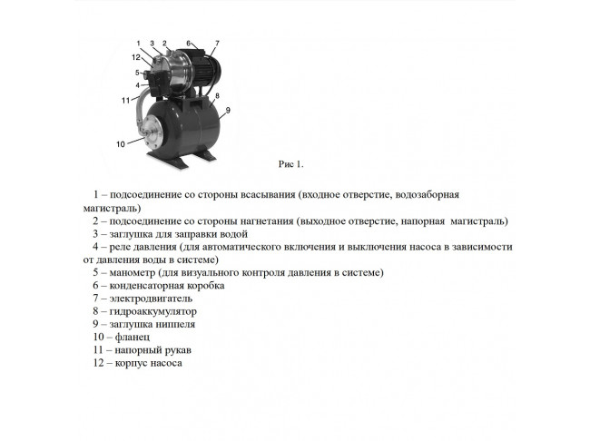 В комплект входит гидроаккумулятор емкостью 24 литра и реле давления. Гидроаккумулятор создает небольшой запас воды на случай перебоев с водоснабжением. Реле давления обеспечивает оптимальный режим работы.