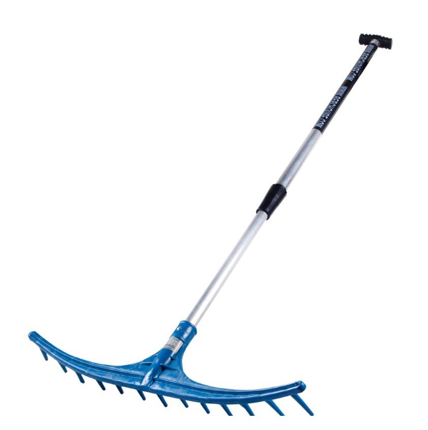Грабли поставляются с черенком, выполненным из алюминия. Черенок можно настроить на оптимальную для работы длину, благодаря телескопической конструкции.