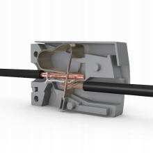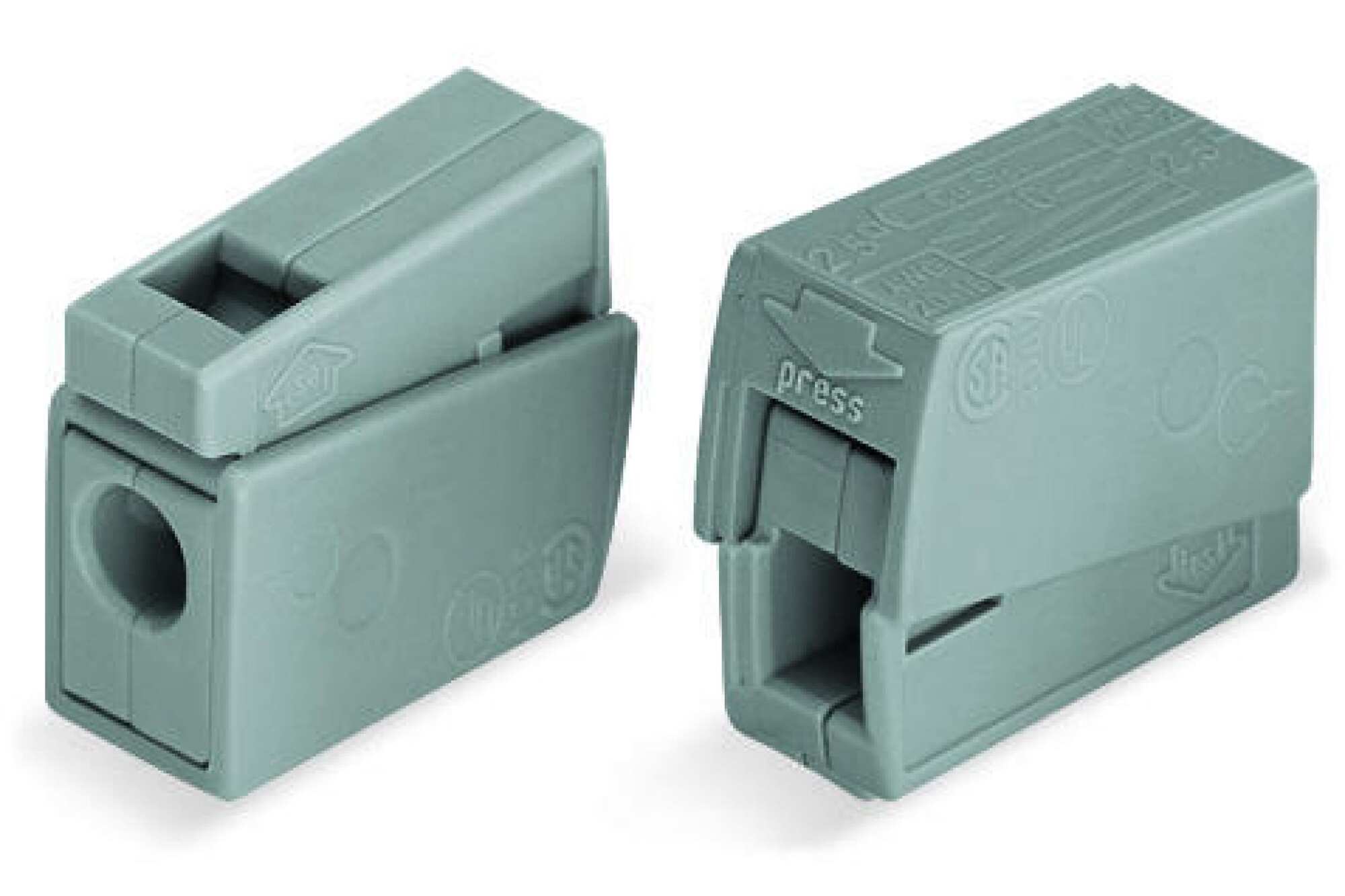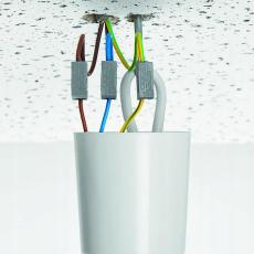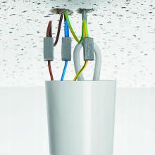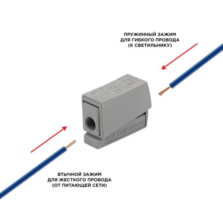 Со стороны светильника: одно- и многожильные проводники 0,5 - 2,5 мм2 (вставляются при нажатии кнопки)