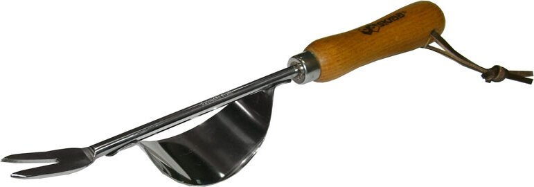 Удалитель сорняков тип ЛАСТОЧКИН ХВОСТ с упором 330 мм нержавеющая сталь деревянная ручка SKRAB 28395 очень простое и удобное в работе приспособление, которое помогает садоводу легко избавиться от нежелательных сорняков, в том числе одуванчиков, на грядке, клумбе, цветнике без трудоемкого перекапывания земли.