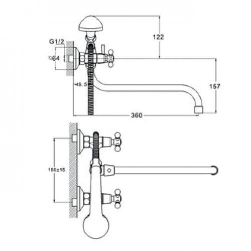 ВХОДИТ В КОМПЛЕКТ:душевая лейка, держатель для лейки, шланг в метал. оплетке 1500 мм
