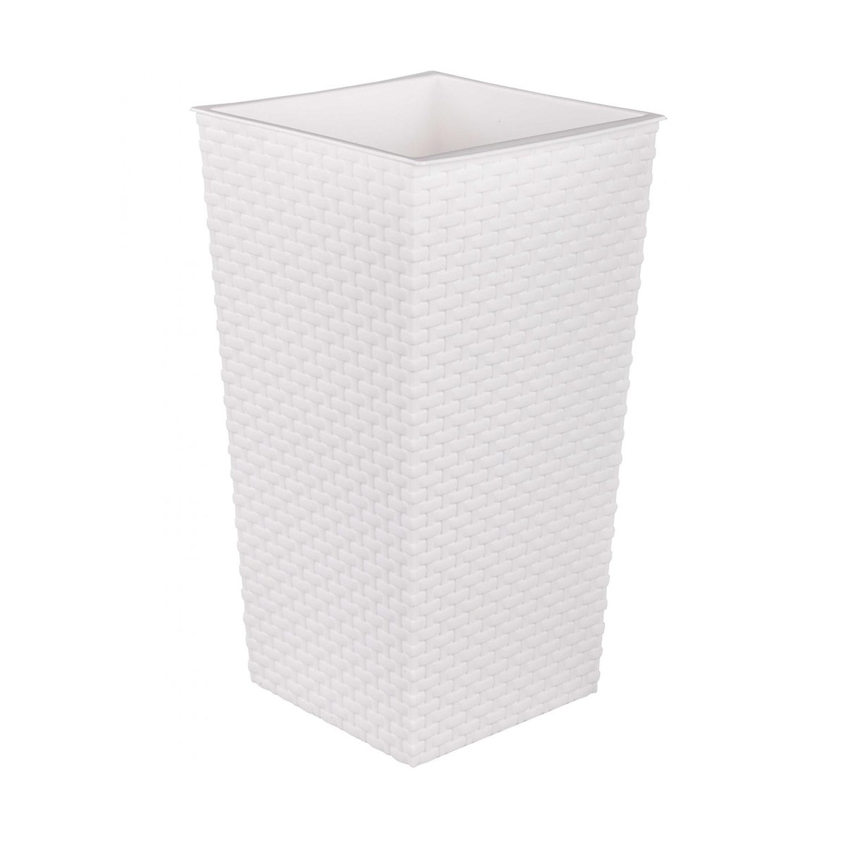 Кашпо напольное 22*22*41.5 Белое со вставкой Альтернатива Ротанг М6825