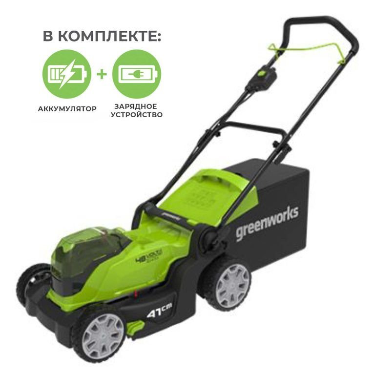 Аккумуляторная газонокосилка Greenworks G24X2LM41K2x с двумя аккумуляторами и зарядным устройством