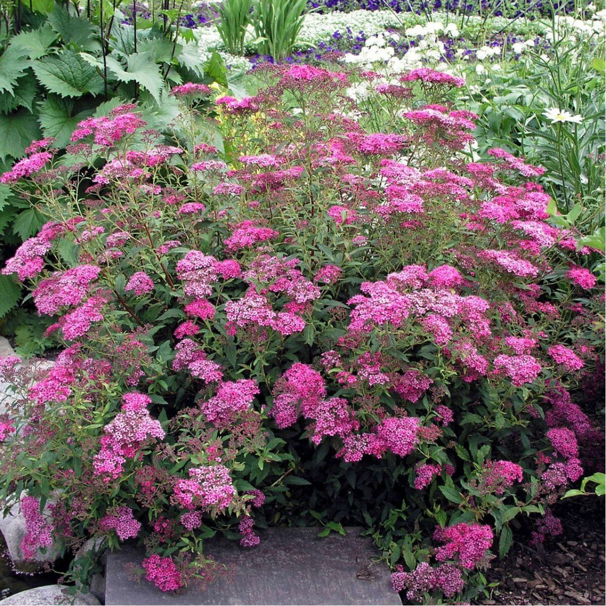 Обильно цветущий компактный кустарник высотой 70 см с очень густой кроной, соцветия крупные, плотные, яркие, розово-красные, листья осенью пурпурные, цветёт в июле-сентябре, место солнечное, великолепно смотрится в рабатках.