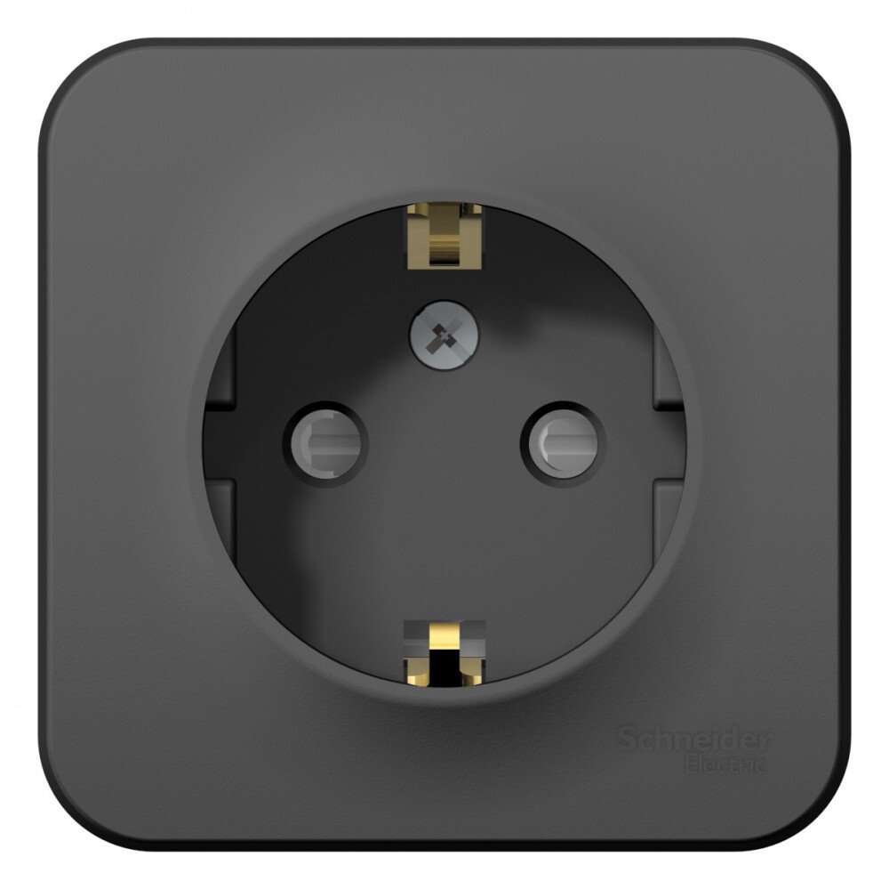 Розетка ОП Blanca 1-м с заземлением 16А с защ.шторками антрацит 11116