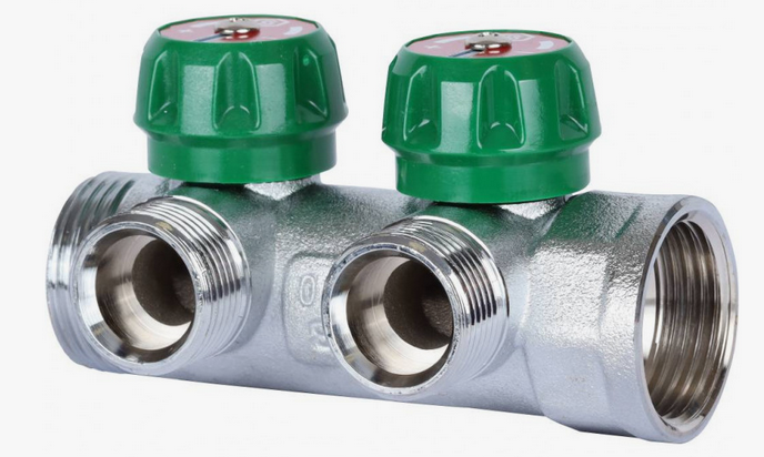 Коллектор распределительный 1"х1/2" 2 выхода евроконус Stout
