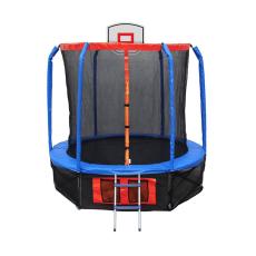 Прочный батут с баскетбольным кольцом, защитной сеткой и лесенкой.