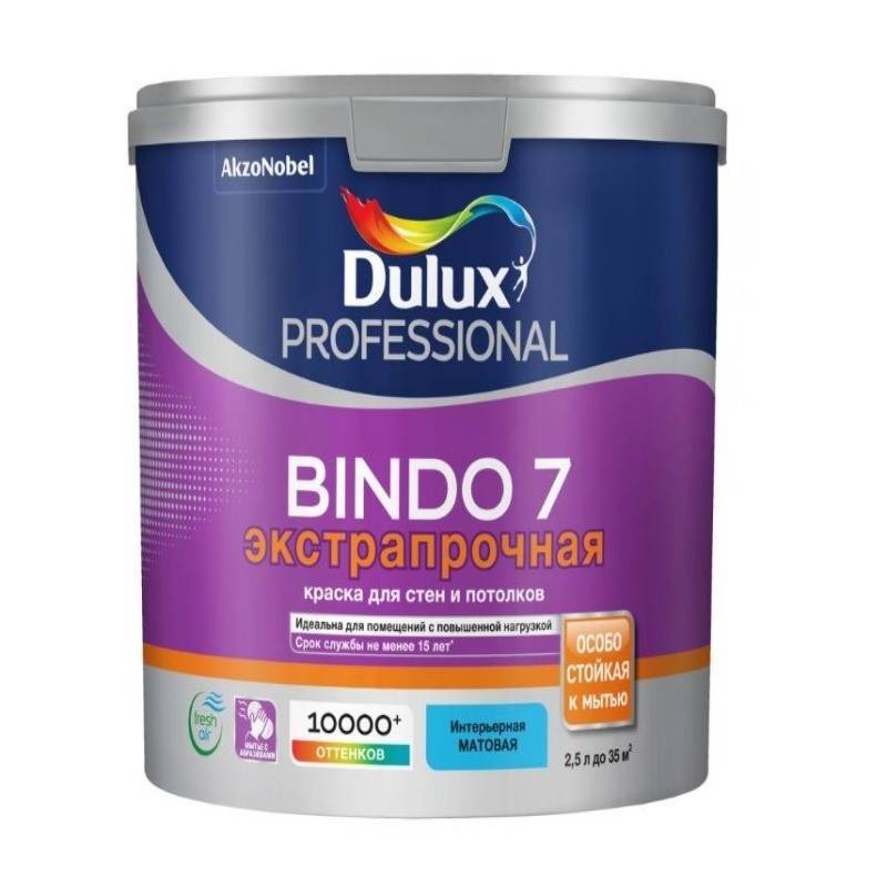 Краска Dulux Bindo 7 экстрапрочная для стен и потолков матовая 2.25л база 3