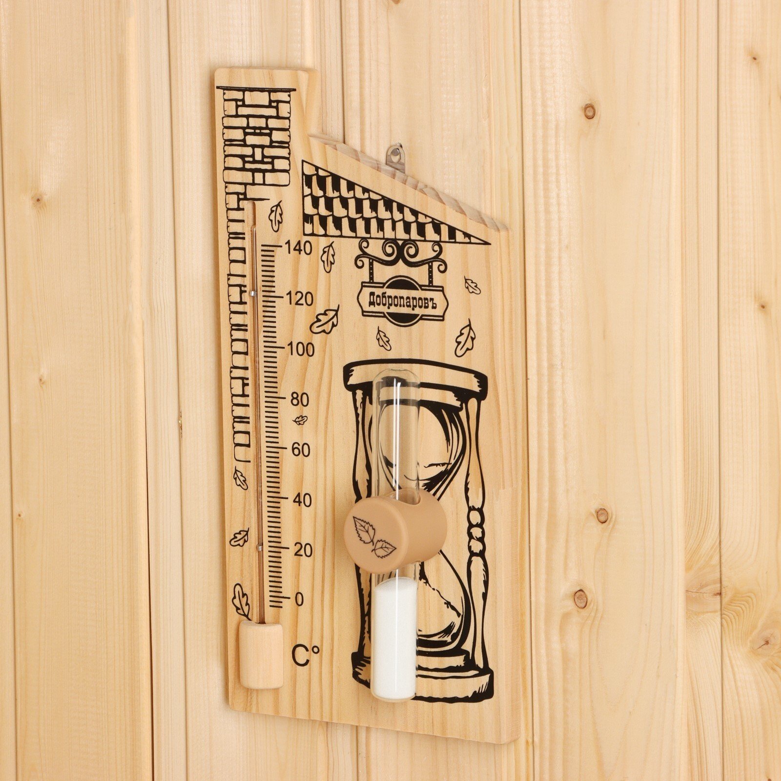 Термометр с песочными часами 15 мин Дом дерево 28*14см Добропаровъ