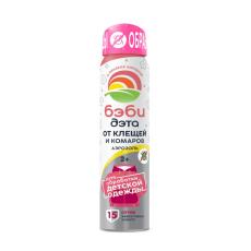 Детский аэрозоль Бэби Дэта от клещей, комаров, мошек, москитов и мокрецов незаменим для комфортного отдыха на природе. Разработан для детей от 2-х лет. Обеспечивает надежную, бережную защиту вашего ребенка. Время защитного действия при нанесении на одежду: от клещей до - 15 суток, от комаров и других кровососущих насекомых до - 10 суток. Не оставляет пятен. Идеальное решение для людей, испытывающих дискомфорт или аллергические реакции при нанесении различных средств на кожу.