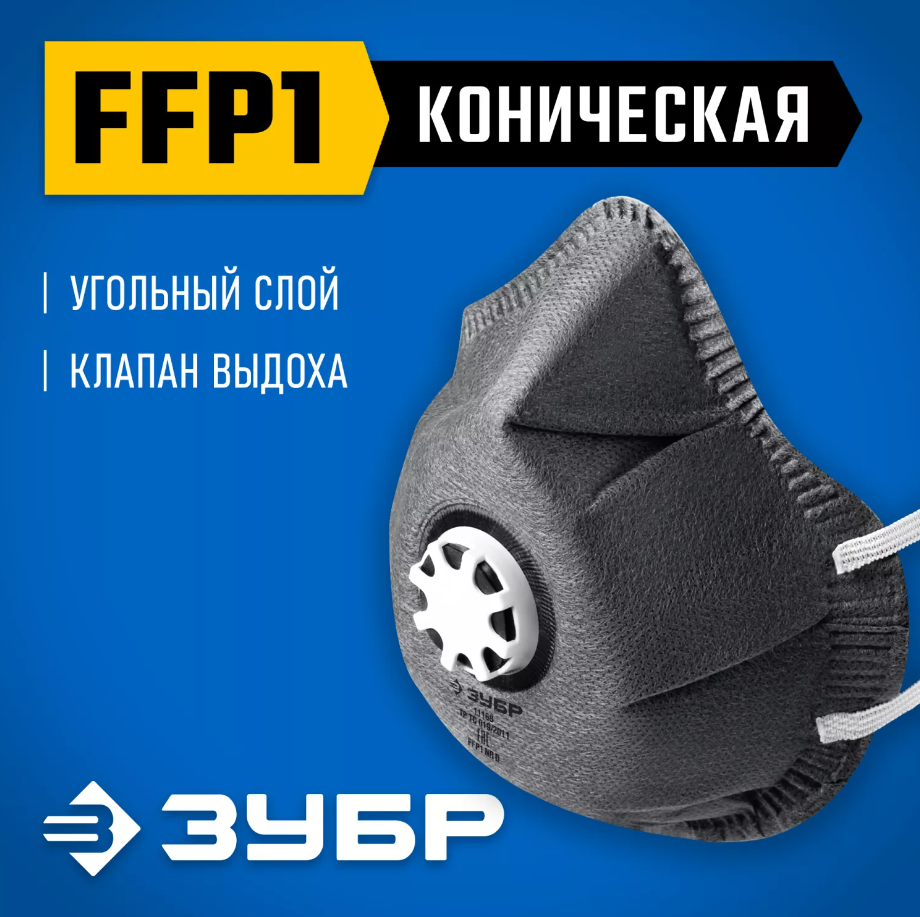 Маска с клапаном выдоха коническая с угольным слоем ФГ-80 класс защиты FFP1 Зубр 11168