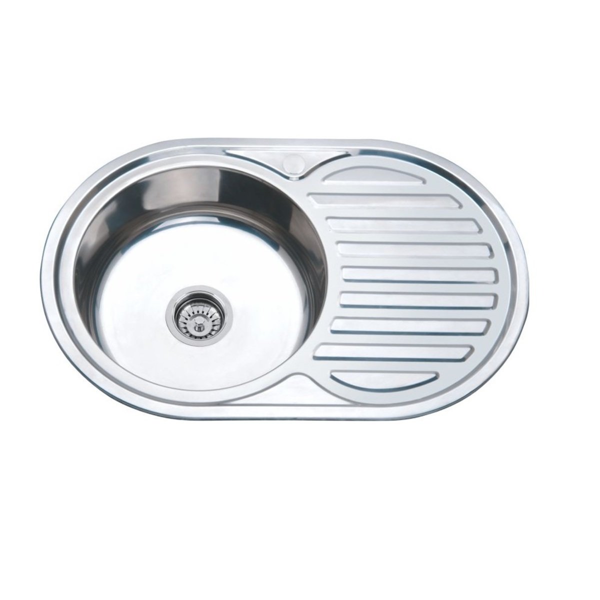 Врезная мойка для кухни из нержавеющей стали РМС, выполнена в стандартной овальной форме, что позволяет удачно вписать модель в кухонный гарнитур.