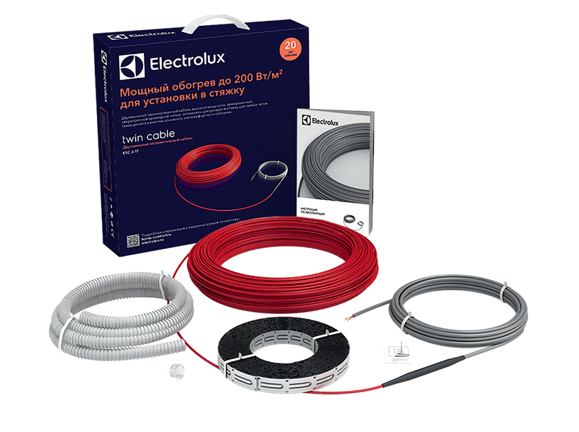 Кабель Electrolux ETC 2-17-800 комплект теплого пола НС-1073735 устанавливается в бетонную стяжку не менее 50 мм толщиной.