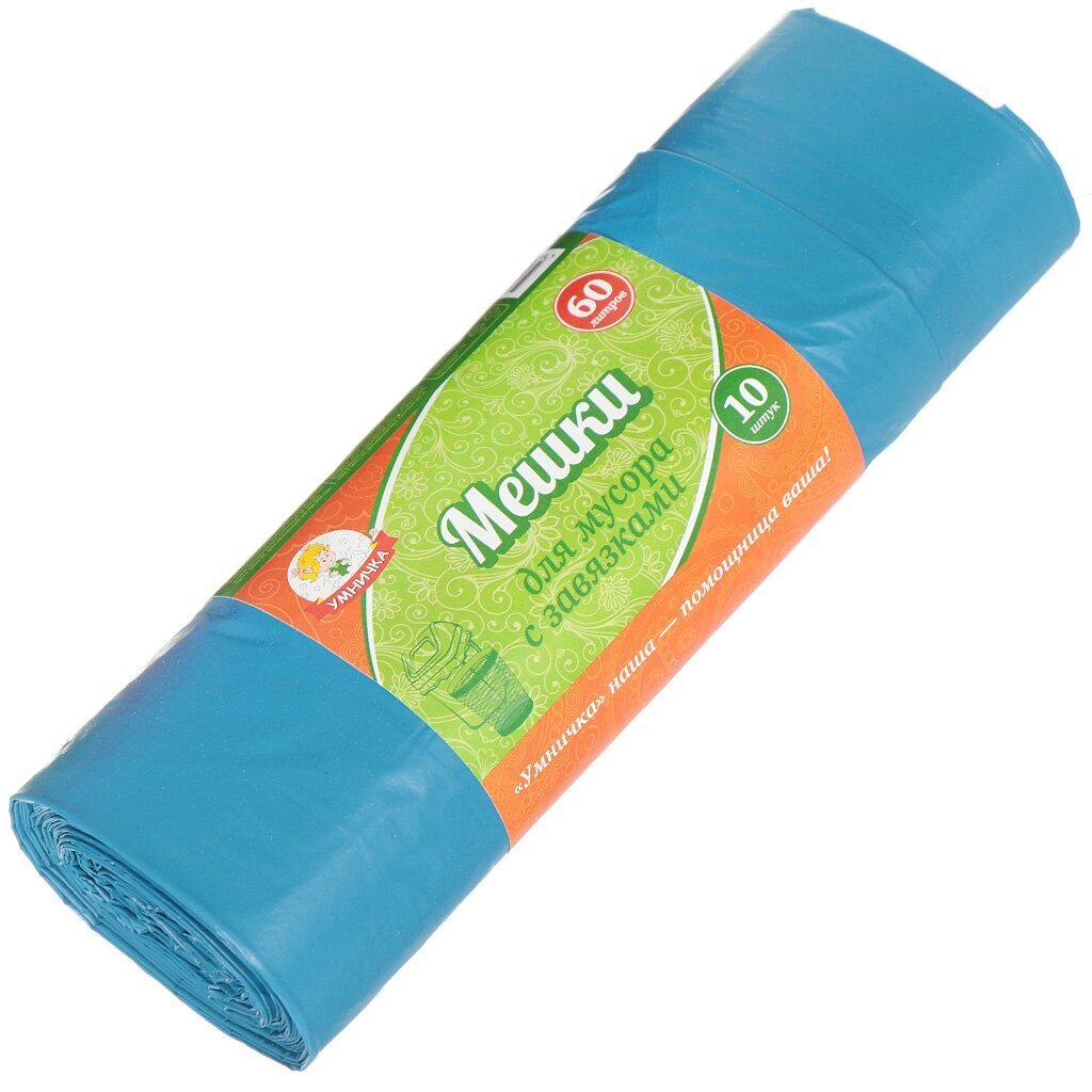 Мешки для мусора “Умничка®” с завязками 60 л х 10 шт. Мешки для мусора прекрасно удерживают неприятные запахи и препятствуют распространению микробов, благодаря тесьме-завязке. Оптимальная толщина мешка и специальный состав сырья позволяют избежать разрывов при проколах и порезах мешков для мусора. Дно мешка легко выдерживает нагрузку благодаря особому крою бокового шва. Разделены качественной перфорацией, не повреждающей мешок в момент отрыва от рулона.