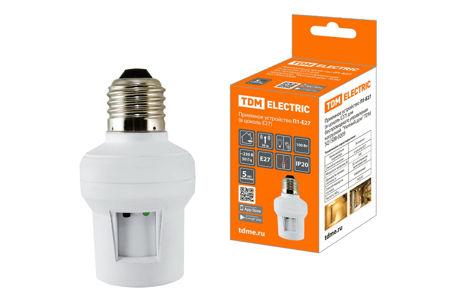 Приемное устройство П1-Е27 (в цоколь Е27) для беспроводного управления нагрузкой "Уютный дом" TDM SQ1508-0209