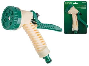 Режимы поливац ентральная струя (режим center); конусное распыление (режим cone); режим проливного дождя (режим soaker); мелкодисперсное распыление туман (режим mist); душ (режим shower); веерная струя (режим jet); широкое распыление (режим flat)