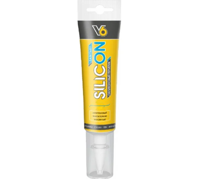 Герметик силиконовый санитарный бесцветный V6 80 мл 02-03-24 11608315 применяется для уплотнения соединительных и деформационных швов на полу и стенах, при производстве окон и стекольных работах, в уплотнении, герметизации и ремонте автомобилей, прицепов и судов, для керамических настенных и напольных покрытий, для заделки швов на кухне и в ванных комнатах в местах примыкания сантехники. Содержит противогрибковые добавки.