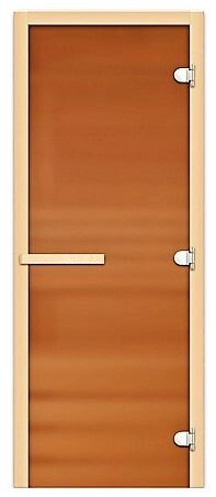 Дверь банная стекло Бронза матовая 1900*700 Лиственная кор. 8мм 3 петли Сила Алтая