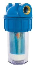 Фильтр очищает, проходящую через него воду, умягчает её, защищает технику и трубы от образования изветсковых отложений и коррозии. Идёт в комплекте с нитяным картриджем и настенным держателем.
